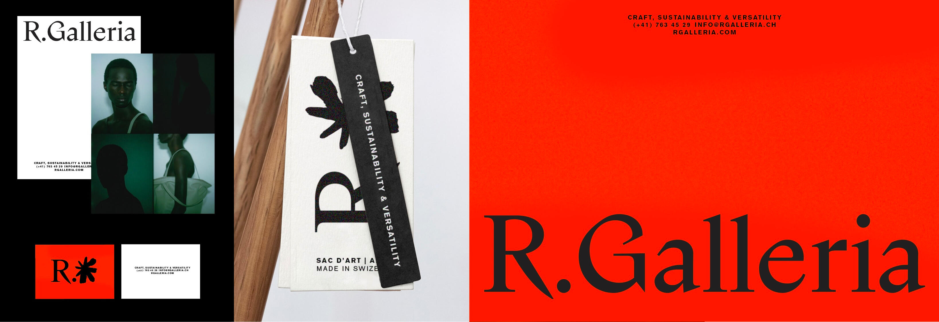 R.Galleria is a Swiss handbag brand that merges art, elegance, and sustainability. The brand’s identity is built around bold graphic elements and a warm, vibrant orange palette, evoking Mediterranean luxury. Each detail, from logo to packaging, is designed to reflect timeless sophistication while embracing responsible fashion.